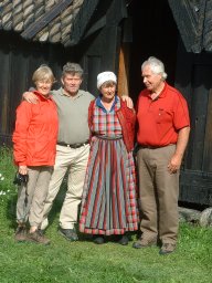 Like Olav Åsteson from "Draumkvedet" I started sleeping on Christmas Eve ....(around noon) ... But instead of maintaining the sleep for two weeks, I came out of the sleep about 5 hours later (17.00). My intensions had been to compose this years Xmas greeting in the night 23.-24. December. Unfortunately, my stomach was not in link with the calendar, (probably 24 hours ahead) and gave me sympthoms like I had too much to eat in a short time..... - So - no fingers has entered the keyboard in 24 hours ... until now ! As you might observe from the pictures above, the decorations has not changed much over the years (Jul2005), but one year ago new 'XMas curtains' entered the home ! Collected around the "nissehus" are, as you probably observe, a strange bunch - from left a Chatolic Saint ?, carved by a man from Poland, a drummer from the 'Fanti'-tribe in Ghana, a 'Matruska' bought in Praha 36 years ago - and on the right flank, recognizable by the birth mark, President Gorbatsjov, obtained in Moscow in the 90'. This 'gallery' spans over a long period of time - and a wide area of the globe - BUT, they are, all of them, connected to certain episodes of my life, and they all bring back a lot of memories when I let my thoughts 'run free' ... Looking back at the year which soon has passed, destiny has moved me (residing at 61 degreesN) across 22 latitudes [49-71 N]. - Inside my 'own' habitat, I have had the pleasure of meeting many travellers, seeking their roots in Valdres. - - - Sarah, Marion, Jan Erik, family Olson, the Cin's, fam Peterson, fam. Evensen etc. - In the afternoon of August 7. two eager Genealogists from 'over there' Jean Marthaler and Darin Flansburg were presented with the 'ValdresLogo silver pin' for their efforts to keep strong ties between our area and our relatives on the opposite side of the Atlantic ocean. An invitation brought me to Oslo last weekend. After enjoying my breakfast on Sunday morning, my feet took me down to Stortorget. When the rest of the group left for the Bus-station,one person was missing - but - joined the 'gang' by the "Valdres-express", Where had I been - look at the list - a lot of people from Valdres had frequented this building before me ! - But .. some eyebrows were raised ....