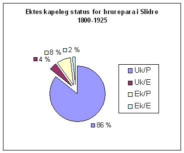 Giftarmål i Valdres frå 1800 fram til om lag1925. Etter å ha leita i bortimot halvanna år etter Valdrisar som gifta seg "på bortebane" snudde eg på flisa og tok for meg kyrkjebøkene frå dei 3 'gamle' prestegjelda i Valdres for å leite etter folk som kom utanfrå og vart gifte her i regionen. - Samstundes noterte eg i same database giftarmål over dei "gamle" prestegjeldsgrensene (Vang, Slidre og Aurdal) for å få litt meir oversikt over lokal migrasjon(flytting). - - - - - Eit anna interessant spørsmål hadde eg funne at sume prestar hadde ført statistikk over i andre område - Her kan de finna eit par døme - - Lekkje - - - - - - - - Kva ekteskapeleg status hadde brur og brudgom ved giftarmålet, og var det noko endringar over tid på denne statistikken ? Her gjeld same åtvaring som for dei andre listene eg har laga: - - - - - - - - - Du vil sjølvsagt finna utgløymingar, feilskrivne namn, datoar og stader - Alle gjer feil, og eg er ein meister i å laga mange !! - Dersom du finn SYSTEMATISKE feil, gi meg melding om dette - TILFELDIGE feil må du sjølv ta ansvar for å gjera rett i ditt eige material. A) Eit samandrag av resultata for ekteskap der ein av partane kjem utanfrå Valdres finn du som neste tabell - Fullstendig database er å finna her: Lekkje B) Samandrag av tabellen som gjeld giftarmål over prestegjeldsgrensene er å finna lengre ned på denne sida - For fullstendig tabell klikk her:Lekkje C) Statistikk over ekteskapeleg status for brureparet er å finna nedst på denne sida NB: Sidan kyrkjebøkene frå Bruflat 1849-1865 er tapte og Klokkarboka 1866-1893 ikkje inneheld giftarmål, vert statistikken for Etnedal hefta med stor underrepresentasjon ! |