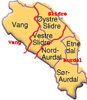 Marriages crossing borders: Between Aurdal and Slidre 492 ........................... Between Vang and Slidre: 395 ............................. Between Vang and Aurdal 49 As Slidre is in the middle of the region, it looks natural that it's leaking in both in the Northern and Southern border. [Abt. 10% of the marriages in Slidre from 1850 to 1900 has one part from "East of the hills and the other part from "Home of the hills" I tida 1850 til 1900 har 10% av ekteskapa i Slidrebygdene ein part frå kvar side av åsen. Det er ikkje gjort noko utrekning av gifte over kommunegrensene i Aurdalsbygdene, men kommune er notert i giftarmålstabellane. |